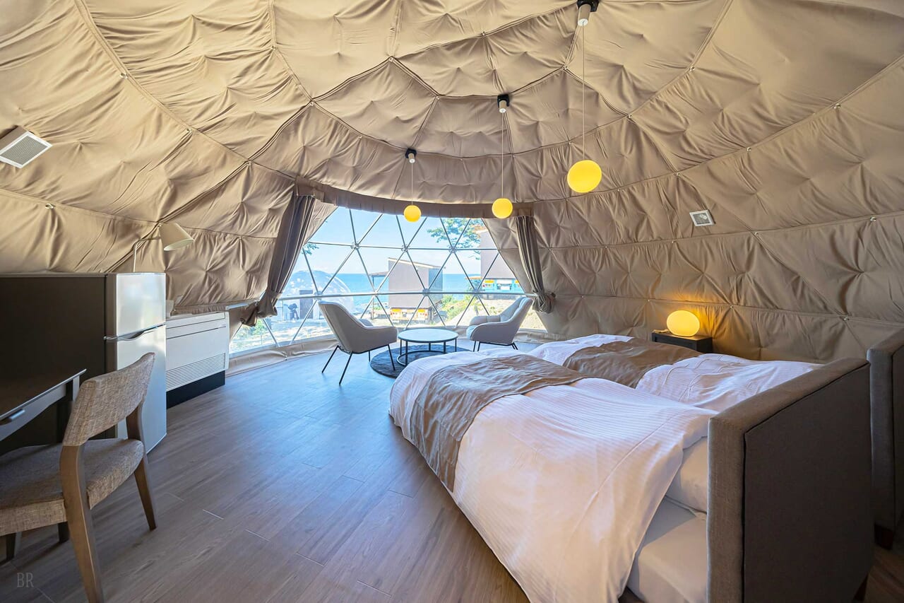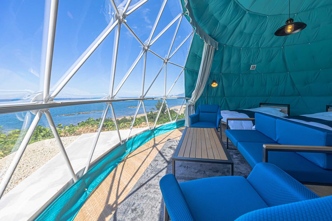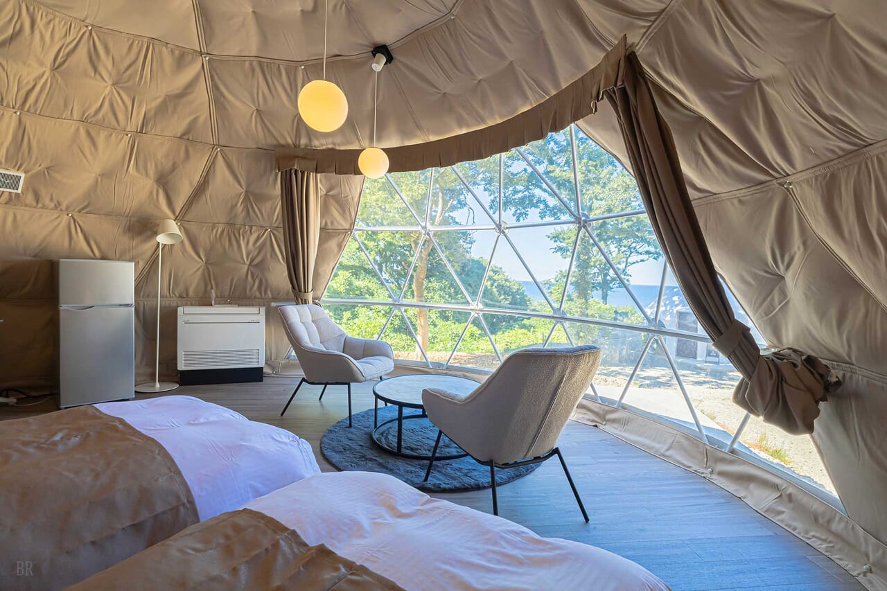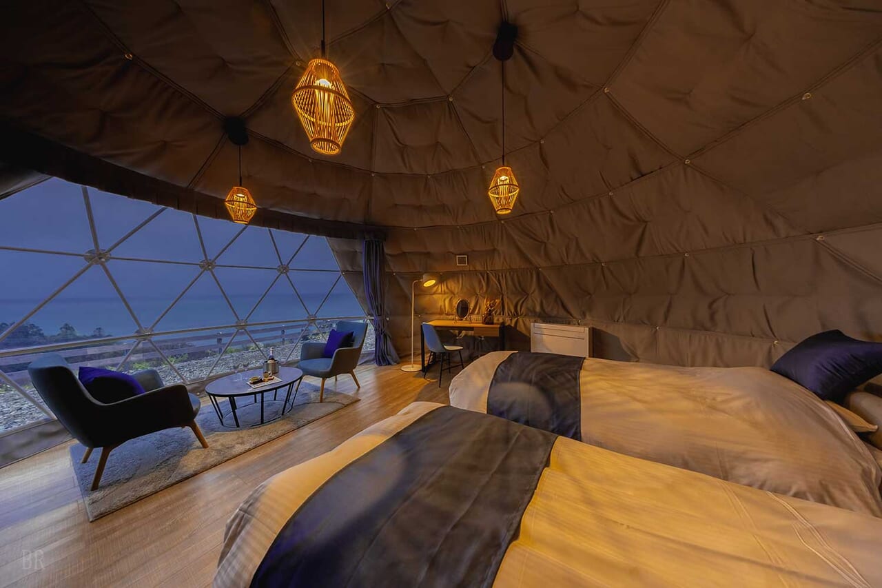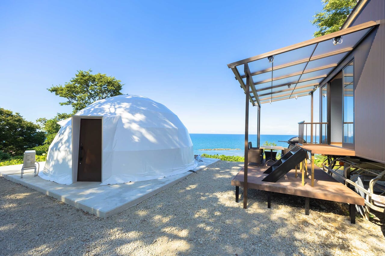 | 備考 | 海を見渡す6mのドームテントです。 洗練されたモダン空間が広がるお部屋でゆったりとお過ごしください。 予約する |