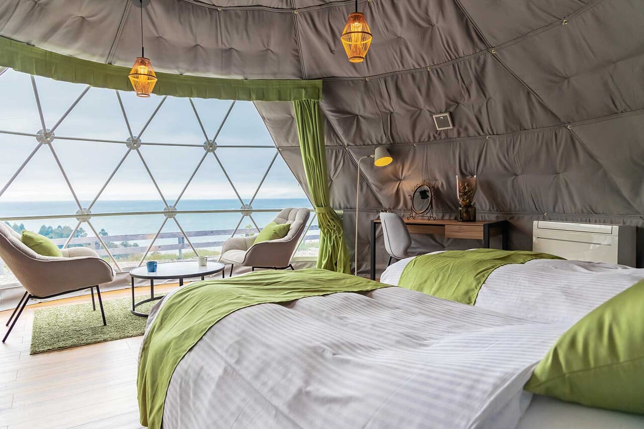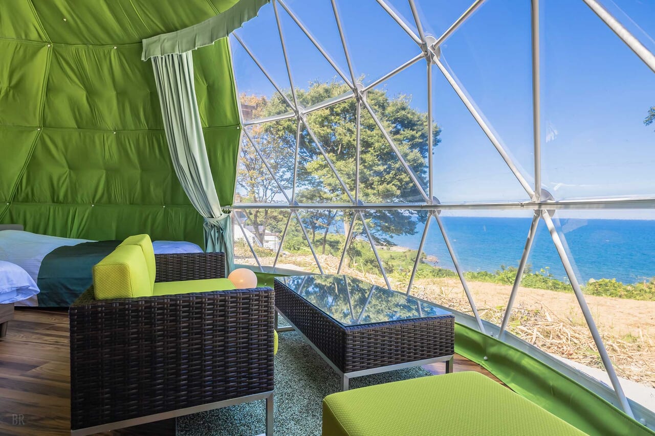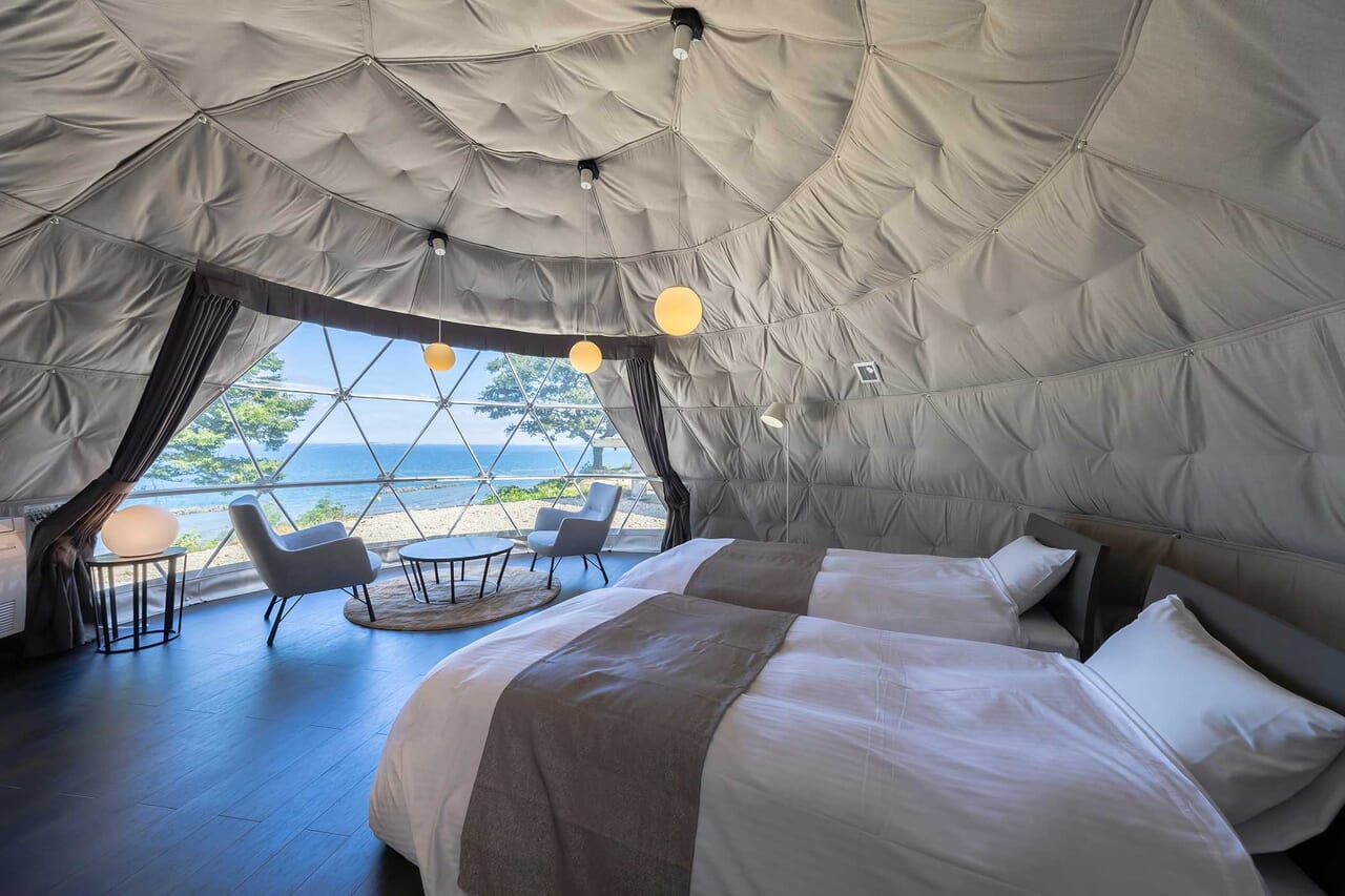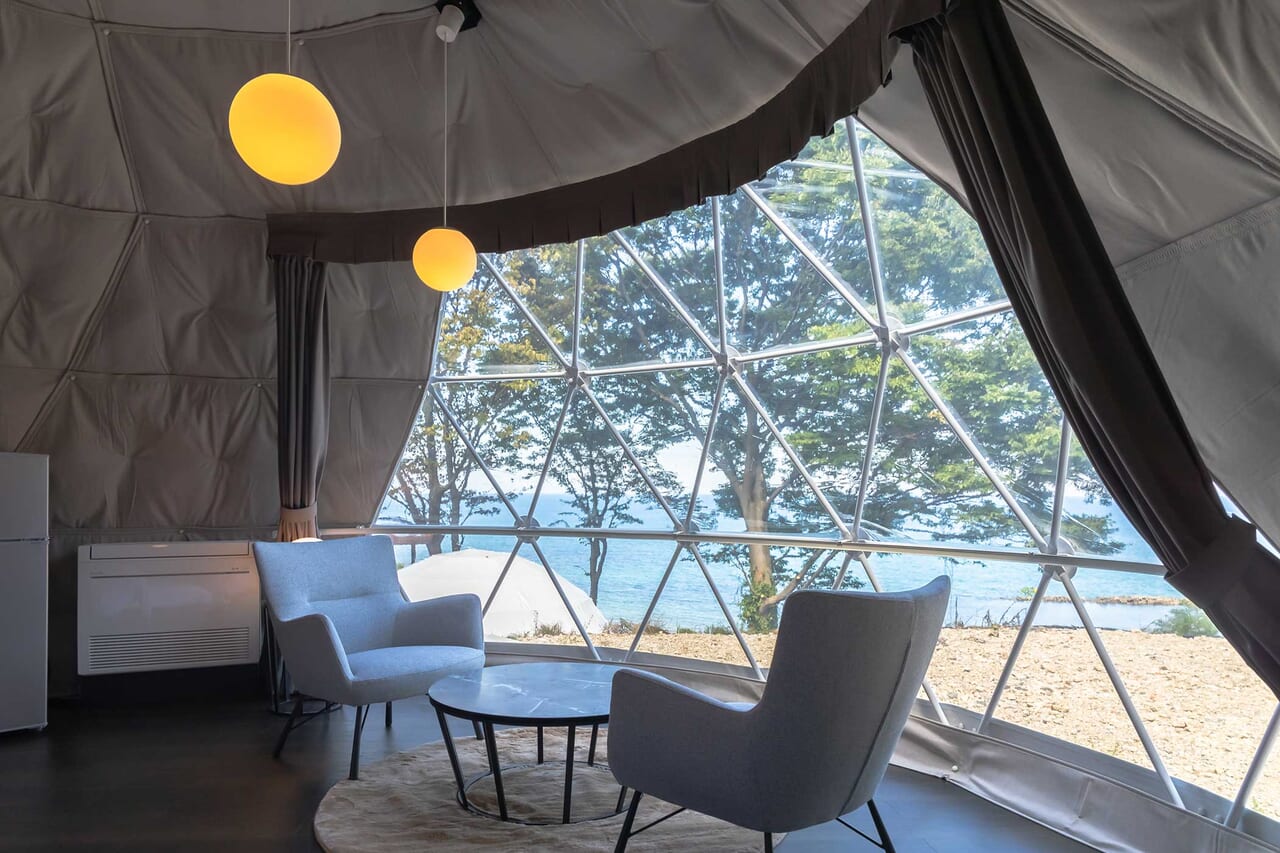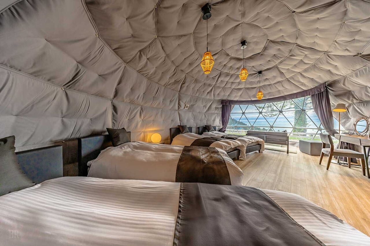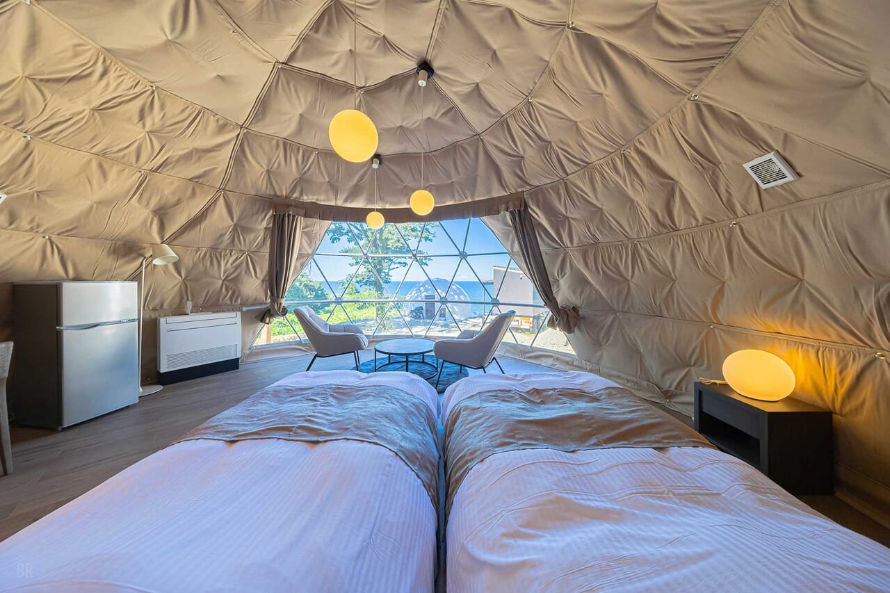 | 備考 | 海を見渡す6mのドームテントです。 洗練されたモダン空間が広がるお部屋でゆったりとお過ごしください。 予約する |
