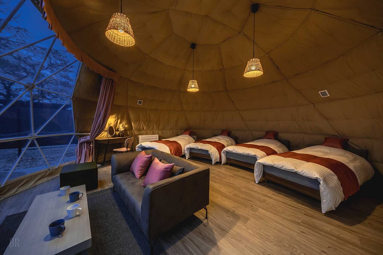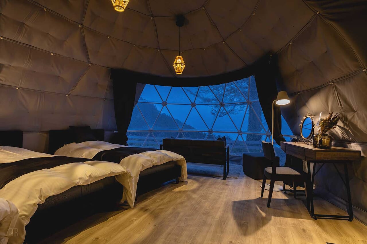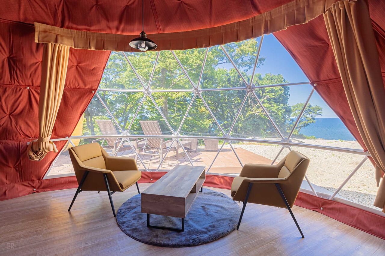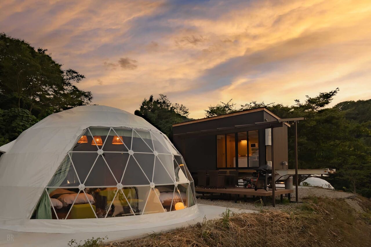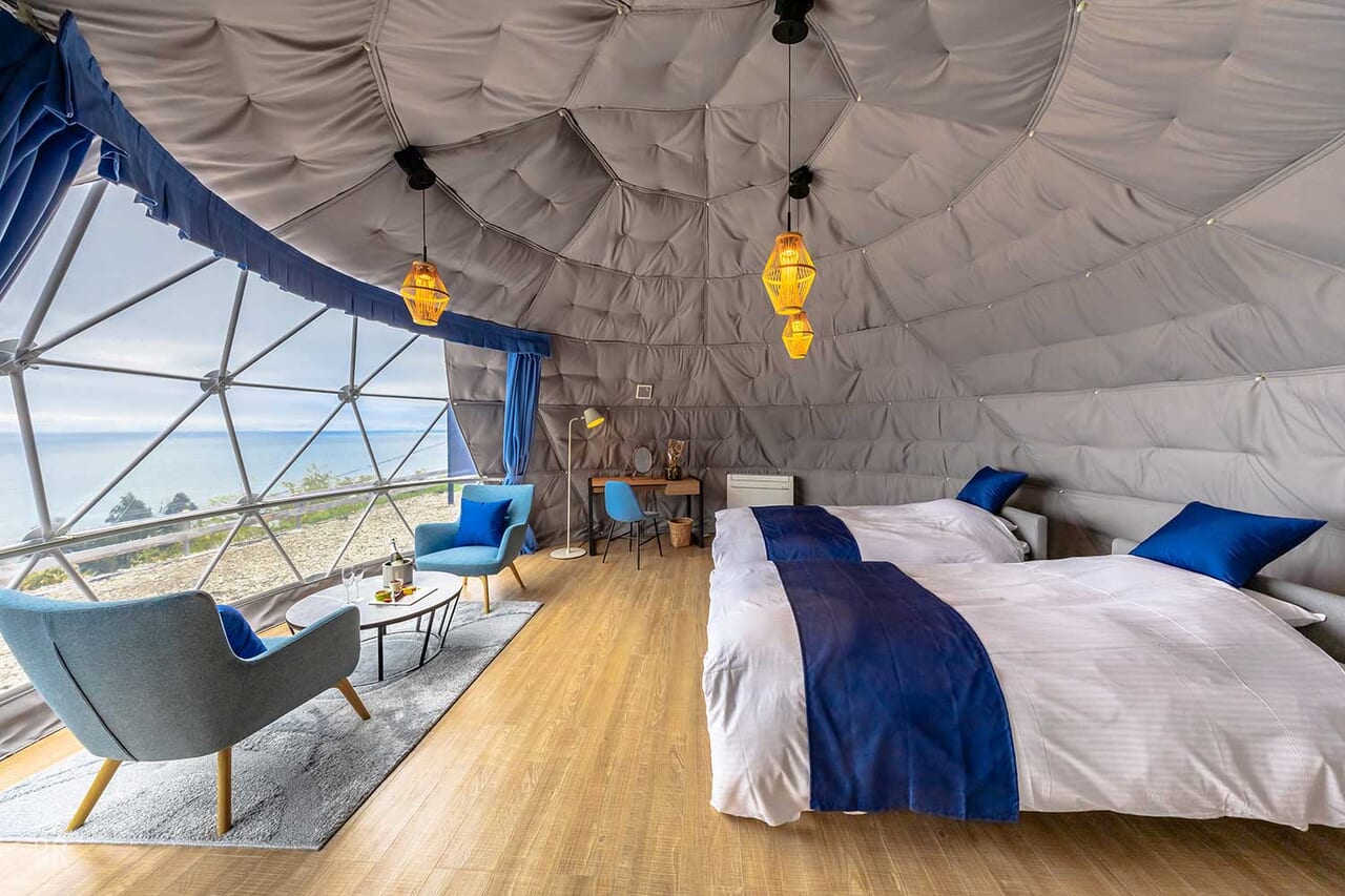 | 備考 | 海を見渡す6mのドームテントです。 洗練されたモダン空間が広がるお部屋でゆったりとお過ごしください。 予約する |
