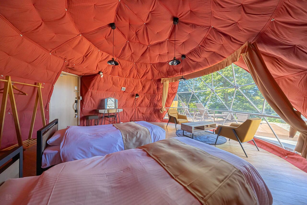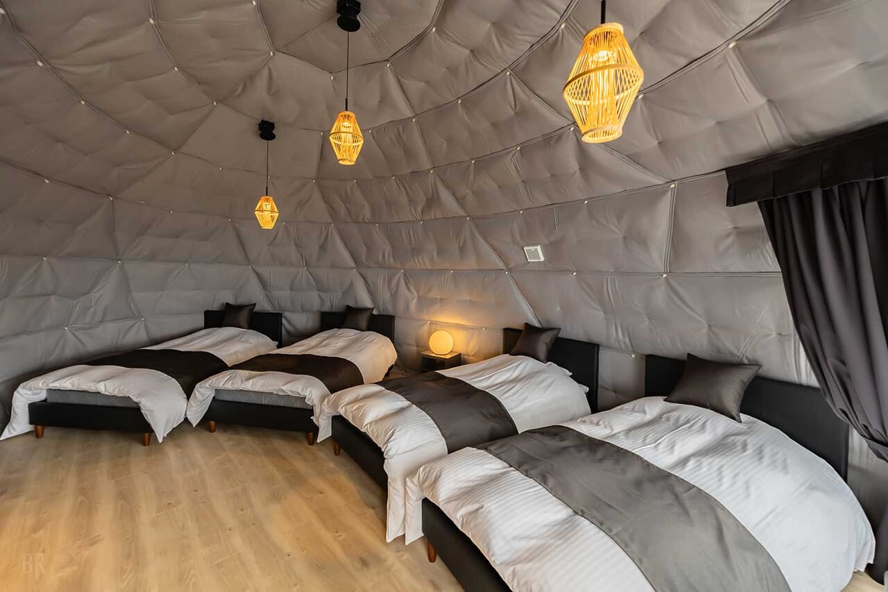 | 備考 | 広々とした空間でゆったりとお過ごしいただける7mドームのお部屋です。 プライベートサウナ付きで心行くまで整う時間をご堪能いただけます。 ⽩⽊と柔かいベージュトーンで北欧感漂う神秘的なイメージの空間です。 予約する |